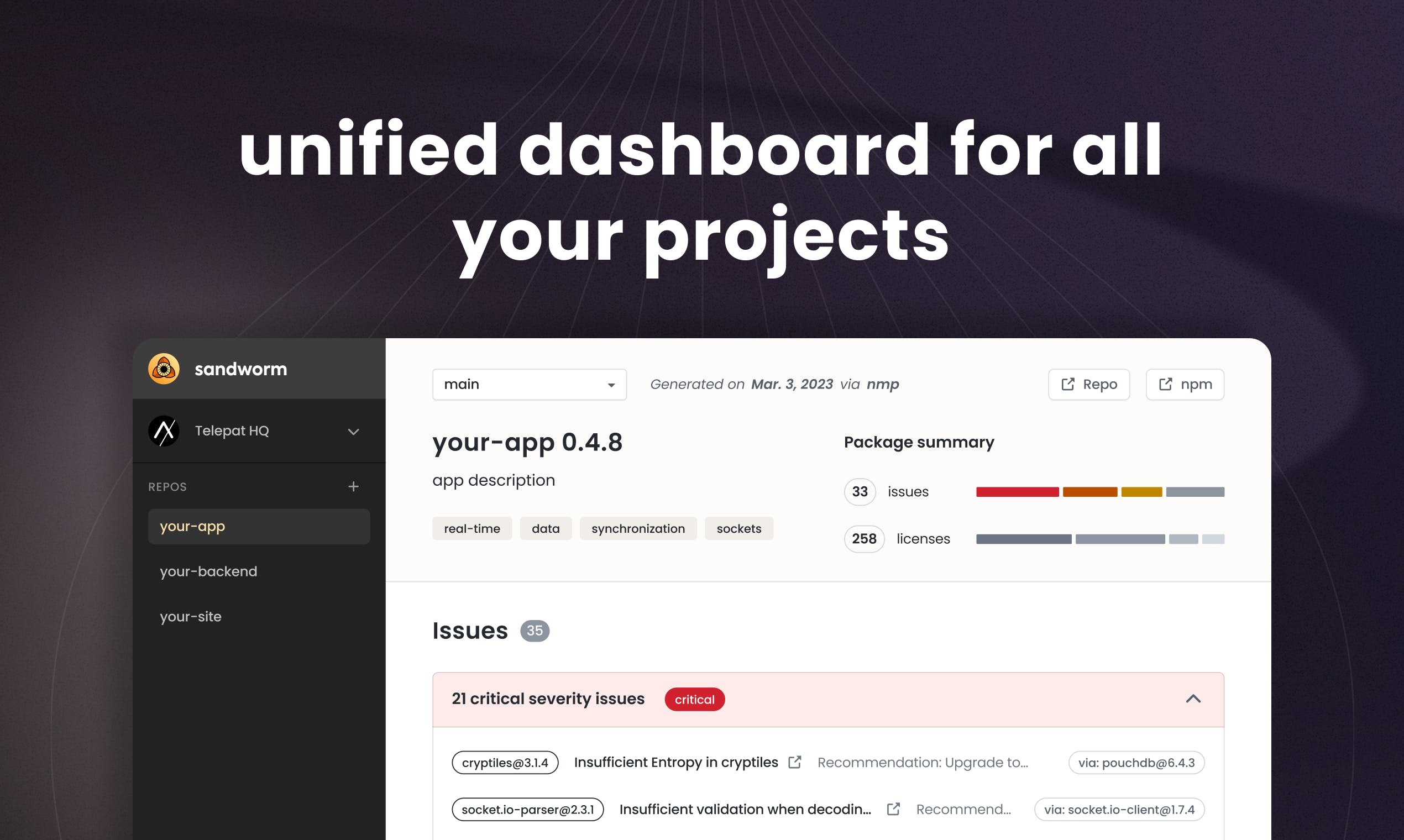 Keep your JavaScript & PHP projects & dependencies safe with Sandworm 👇
